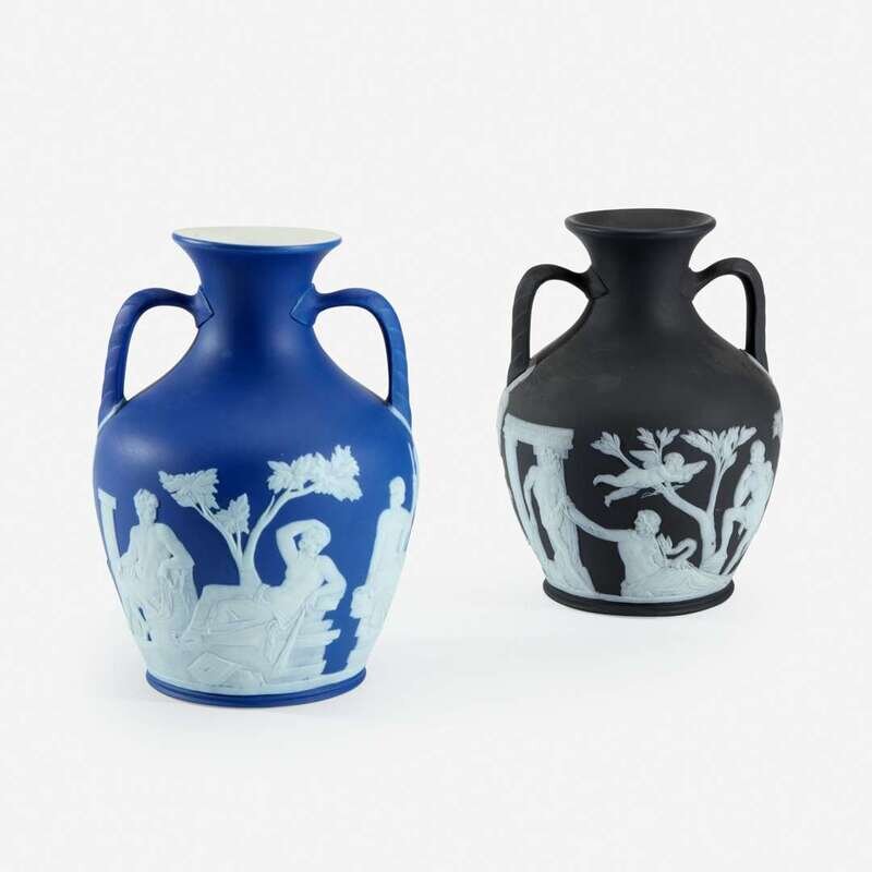 Two Wedgwood Jasper Dipped Portland Vases 19th century