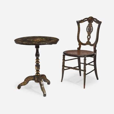 A Victorian Lacquer Flip-Top Table and Side Chair Second half 19th century