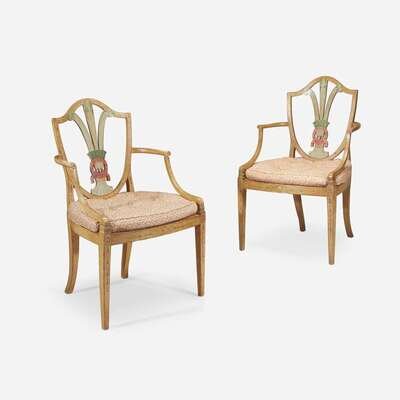 A Pair of Edwardian Prince-of-Wales Plume Polychrome Painted Armchairs Early 20th century