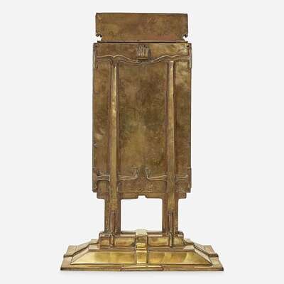 An Arts & Crafts Brass and Foil-Backed Enamel Triptych Altarpiece, "Behold I Stand at the Door and Knock" Alexander Fisher (British, 1864-1936), late 19th/early 20th century