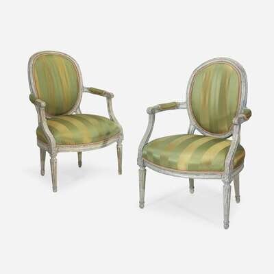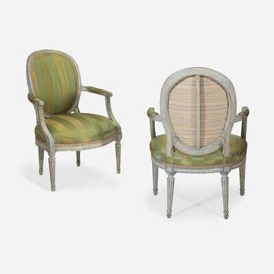 A Pair of Louis XVI White-Painted Fauteuils 18th century