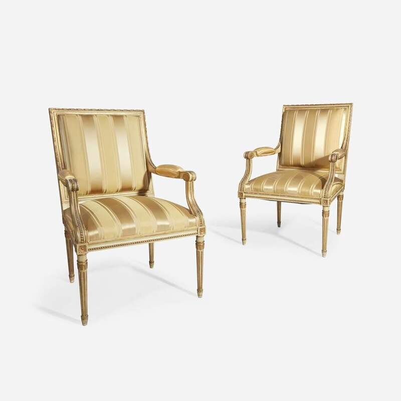 A Pair of Louis XVI Style White-Painted and Parcel-Gilt Fauteuils à la Reine 20th century