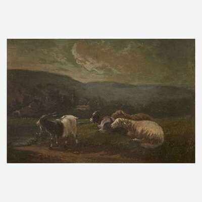 Eugène Verboeckhoven (Belgian, 1799-1881) Landscape with Sheep and Goats before a Stream