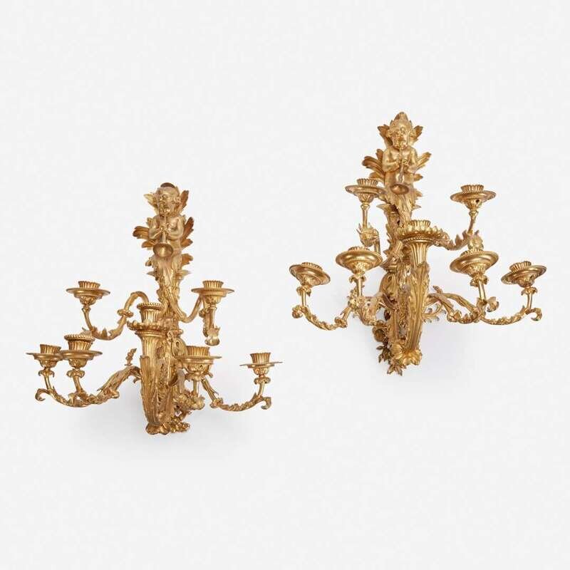 A Pair of Napoleon III Gilt-Bronze Seven-Light Sconces Maison Marquis, Paris, late 19th century