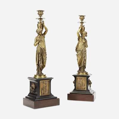 A Pair of Napoleon III Gilt-Bronze and Black Marble Figural Candlesticks