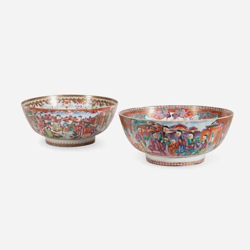 Two Chinese Export Porcelain Mandarin Punch Bowls Late 18th/early 19th century