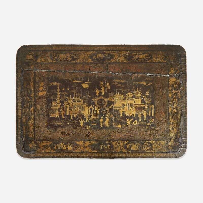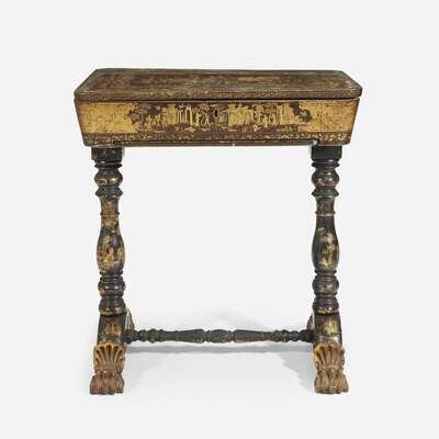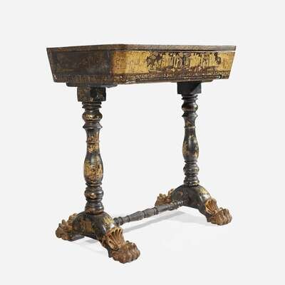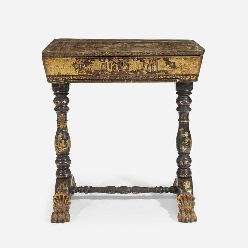 A Chinese Export Gilt Lacquer Sewing Table Mid 19th century