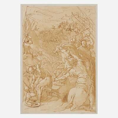 Italian School (18th Century) Saint Peter in Prayer; together with Two CompanionsCombat SceneHonoring the Hero