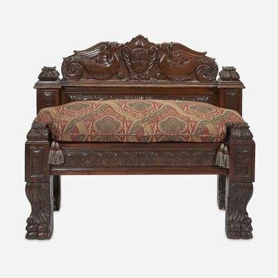 An Italian Baroque Carved Walnut Bench Comprised of 17th century elements