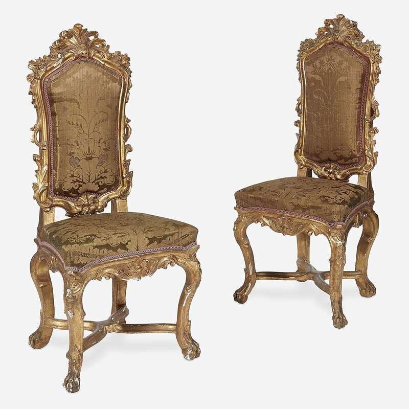 A Pair of Venetian Baroque Giltwood Side Chairs Second quarter 18th century