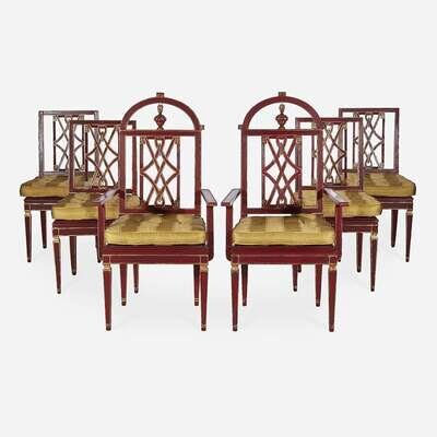 A Set of Four Italian Neoclassical Parcel-Gilt Red-Painted Side Chairs Circa 1800