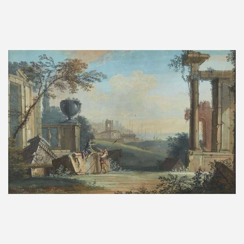 Manner of Giovanni Paolo Panini (Italian, B.C. 1692–1765) Cappricci with Figures; together with a Companion
