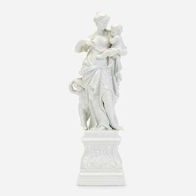 Depicting a woman with two children, allegorical of love, on a plinth, the backside of plinth incised "D70," the underside marked with crossed swords and two dashes.