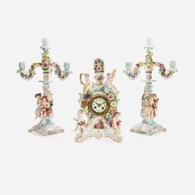 A Meissen Three-Piece Figural Clock Garniture 1815-1860