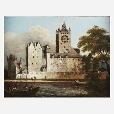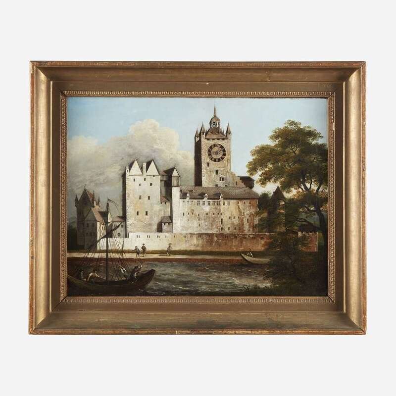 A 19th Century Vienna Clock Movement with a Painted View of a Tower Clock