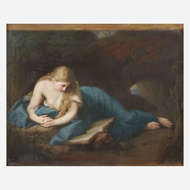 A Large KPM Painted Porcelain Plaque after Pompeo Girolamo Batoni (Italian, 1708-1798) The Penitent Magdalene, early 20th century