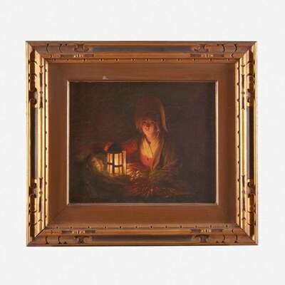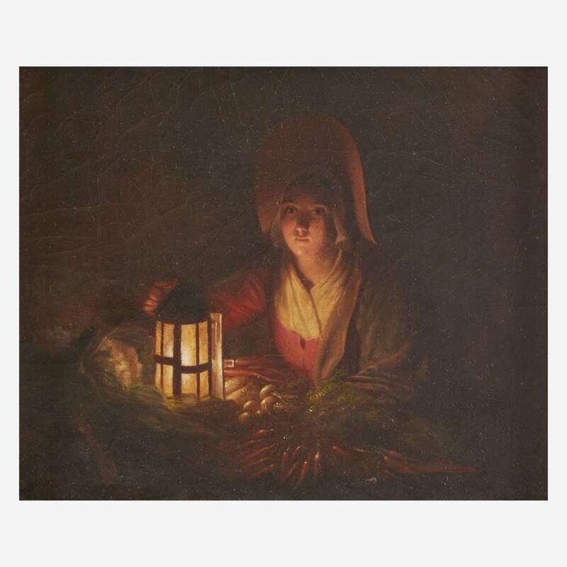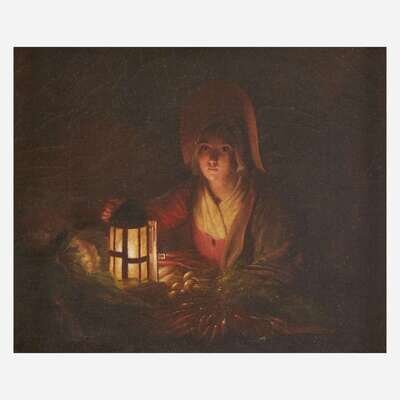Attributed to Johannes Rosierse (Dutch, 1818-1901) Selling Vegetables at Candlelight