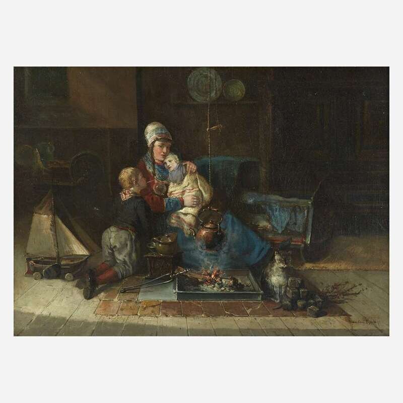 Jan Jacob Lodewijk ten Kate (Dutch, 1850-1929) Mother with Children in Interior