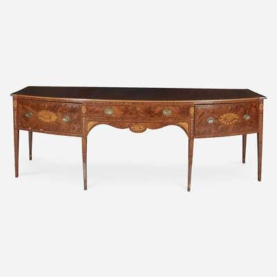 A Fine and Large George III Satinwood Inlaid Figured Mahogany Sideboard Possibly Irish or Scottish, late 18th century