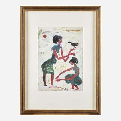 Hamed Nada (Egyptian, 1924-1990) Untitled (Two Women and a Bird)