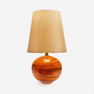 American Large Orange-Glazed Pottery Lamp, circa 1960s