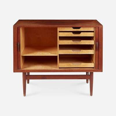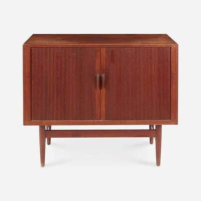 Scandinavian Two-Door Tambour Cabinet, circa 1960