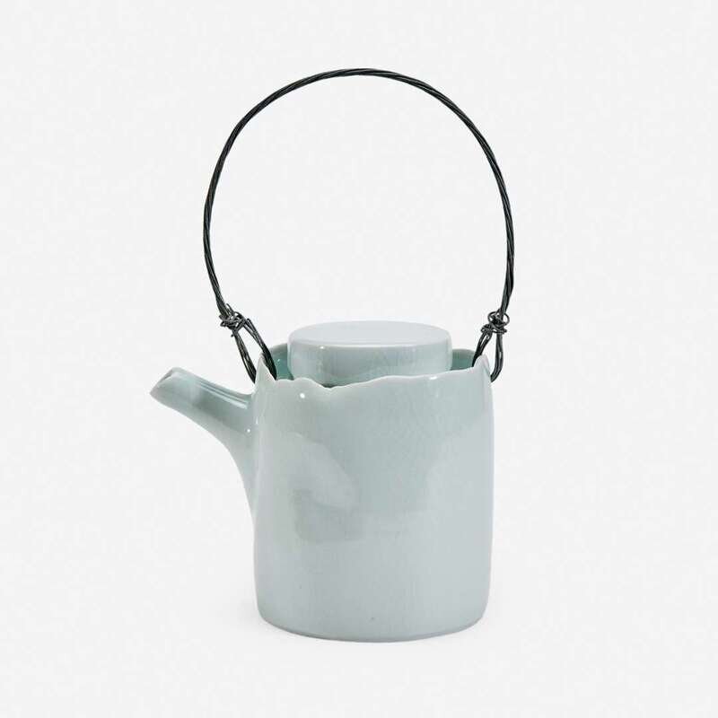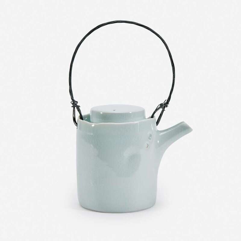Porcelain with pale celadon glaze, metal wire Stamped.