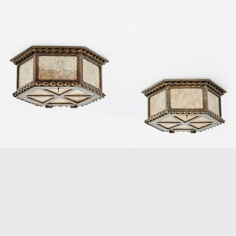 Samuel Yellin Metalworkers Pair of Wrought Iron and Mica Ceiling Lights, Philadelphia, PA, circa 1980s