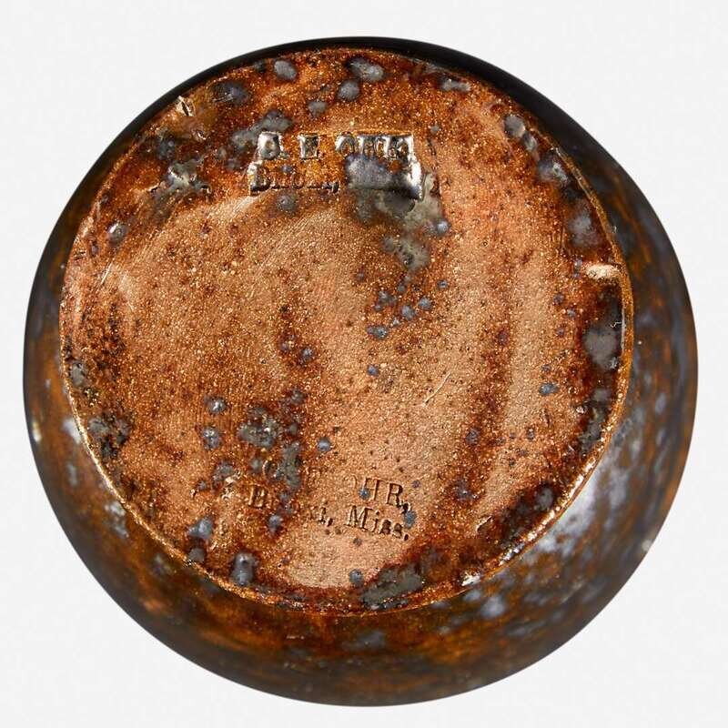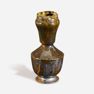 George Ohr (American, 1857-1918) Vase in Olive And Gunmetal Glaze, Biloxi, MS, circa 1897-1900
