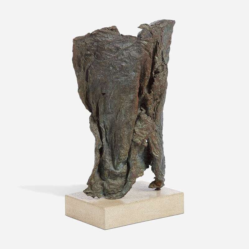 Signed with initials verso, bronze with brown and green patina on composite base.