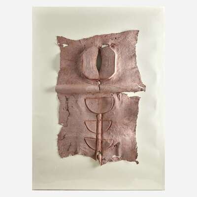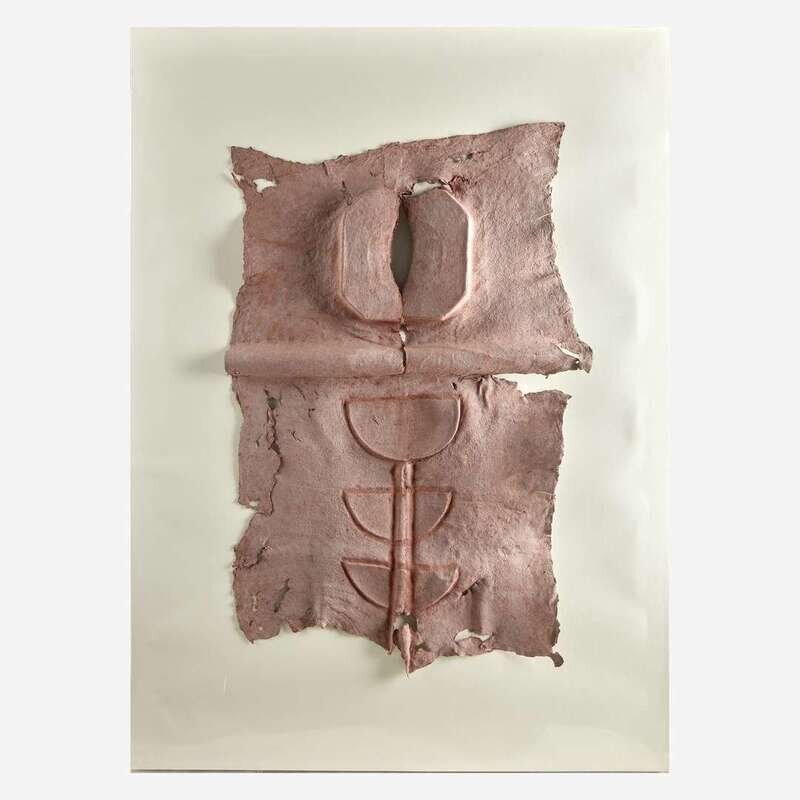 Signed and dated 82 bottom right, handmade paper relief mounted to board within Plexiglas frame.