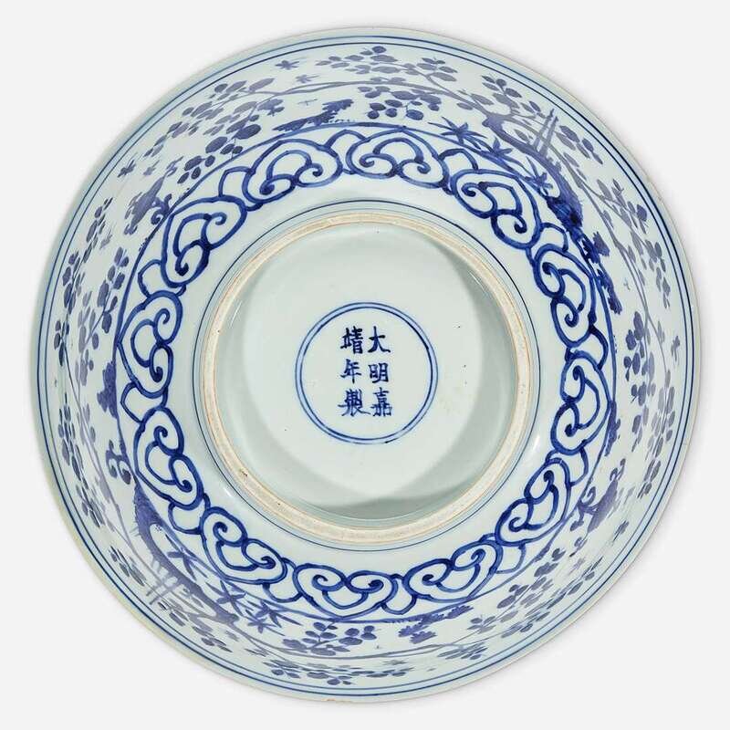 A Chinese blue and white porcelain large bowl Ming Dynasty, Jiajing six-character mark and of the period
