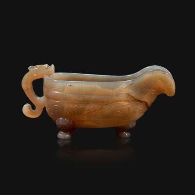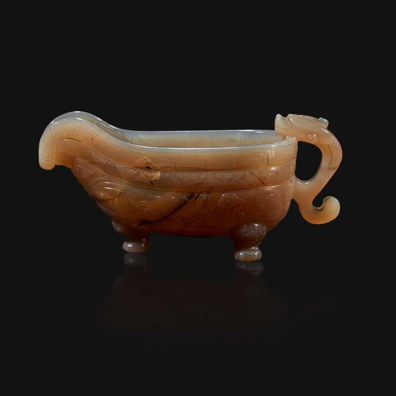 A Chinese archaistic carved agate libation cup, Yi Qing dynasty, 18th/19th century