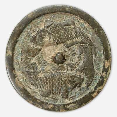 A Chinese bronze "Twin Carp" circular mirror Jin Dynasty (1115-1234)