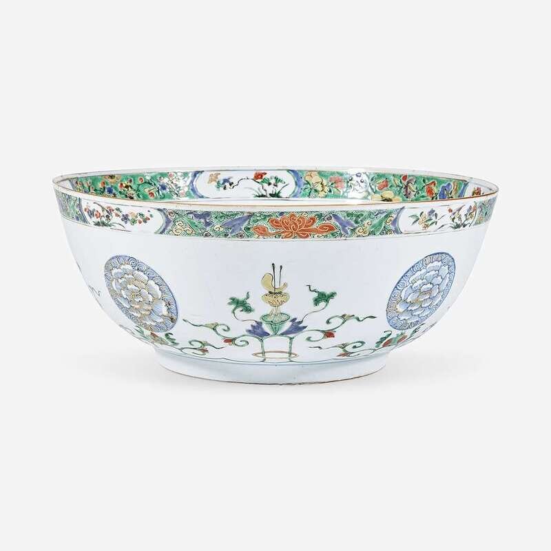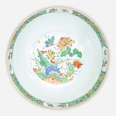 A Chinese export famille verte-decorated porcelain punch bowl Kangxi period
