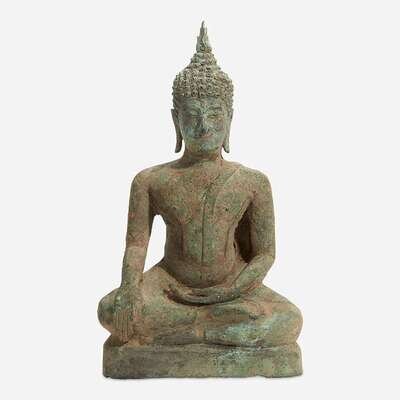 A Thai bronze seated Buddha 16th Century