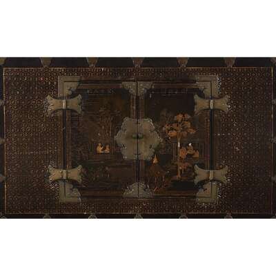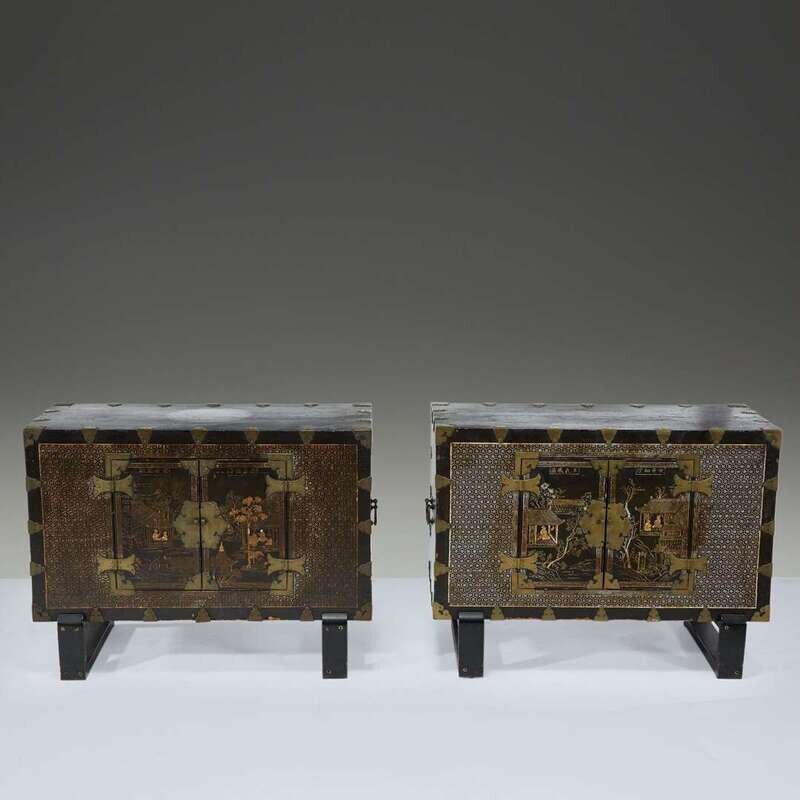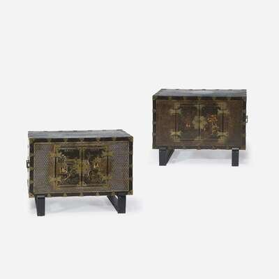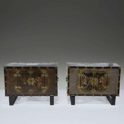 A pair of Korean mother of pearl-inlaid lacquered wood chests 19th Century