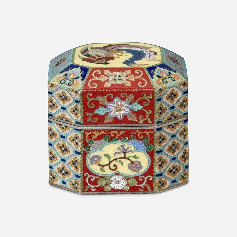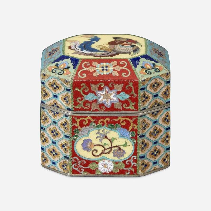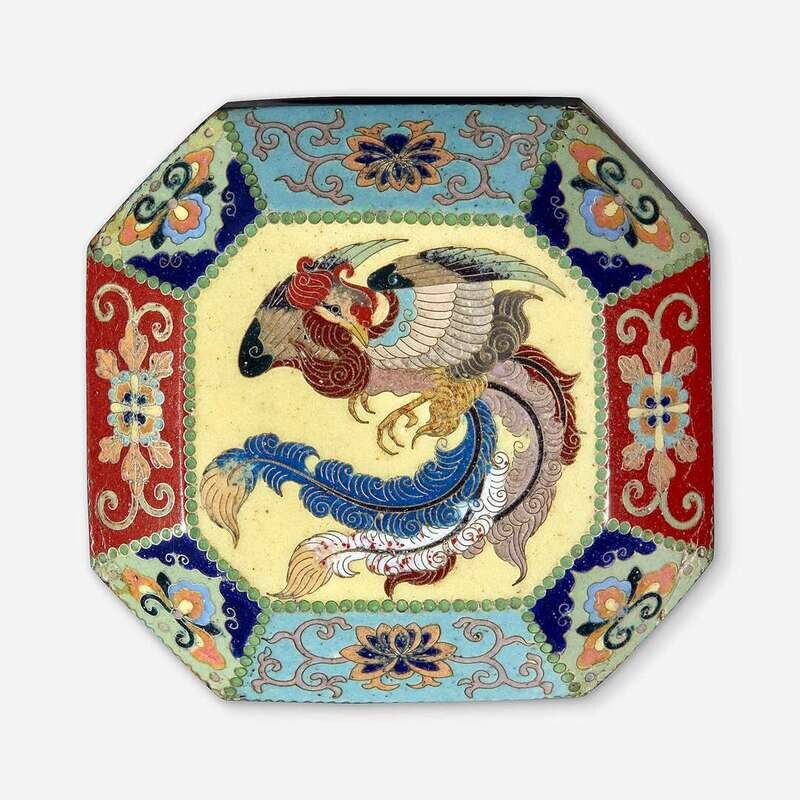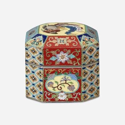 Decorated in gold wire with phoenix and various flowers on the cover. The body decorated with various diapers and floral cartouaches in silver wire, unsigned. NOTE: for a similar example signed Kyoto Namikawa, see Christie's New York, September 17th, 2013, Lot 776.