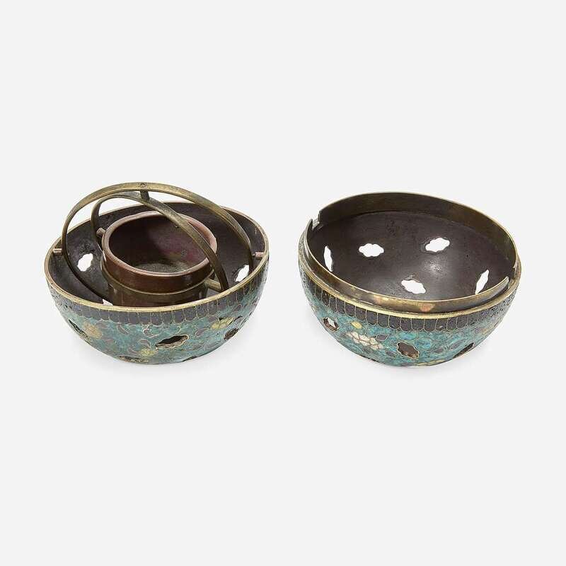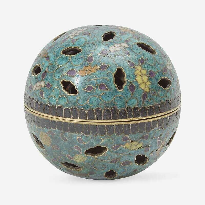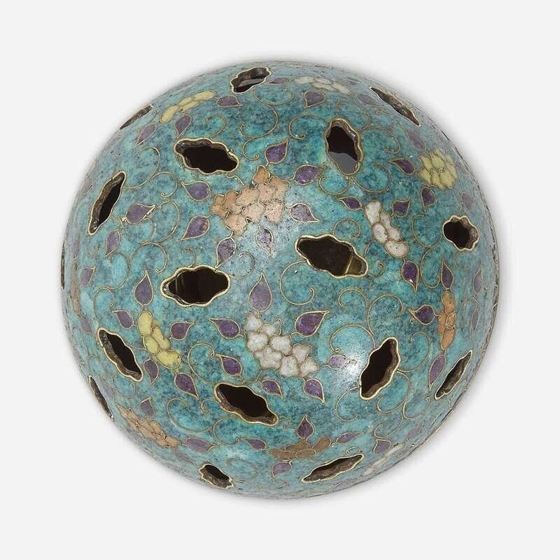 An unusual cloisonné gimbal-mechanism spherical incense burner 19th Century or earlier