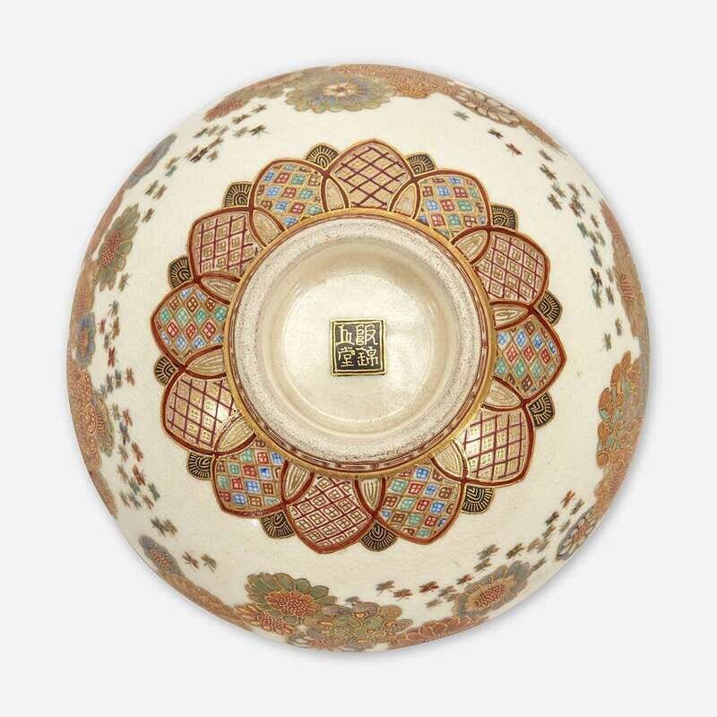 A small Satsuma-type enameled pottery koro with silver cover and a small bowl, Meiji period