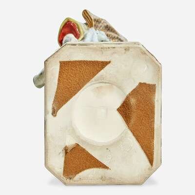 The elegant figure wearing a green-tinted kimono decorated with flowers and maple branches, with elaborately patterned obi, all on an octagonal base, underside with impressed mark.