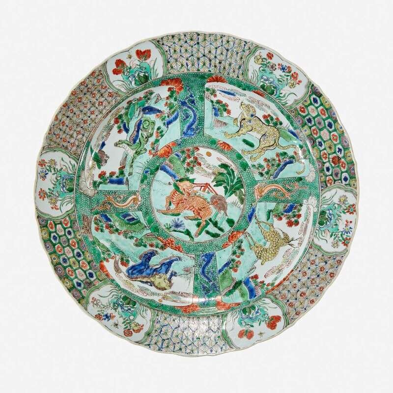 A Chinese famille verte-decorated "Mythical Beasts" porcelain charger Kangxi period