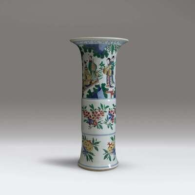 A Chinese wucai-decorated porcelain beaker vase Transitional period, mid 17th Century