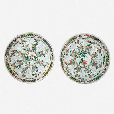 Two similar Chinese famille verte-decorated porcelain large dishes Kangxi period, 17th Century