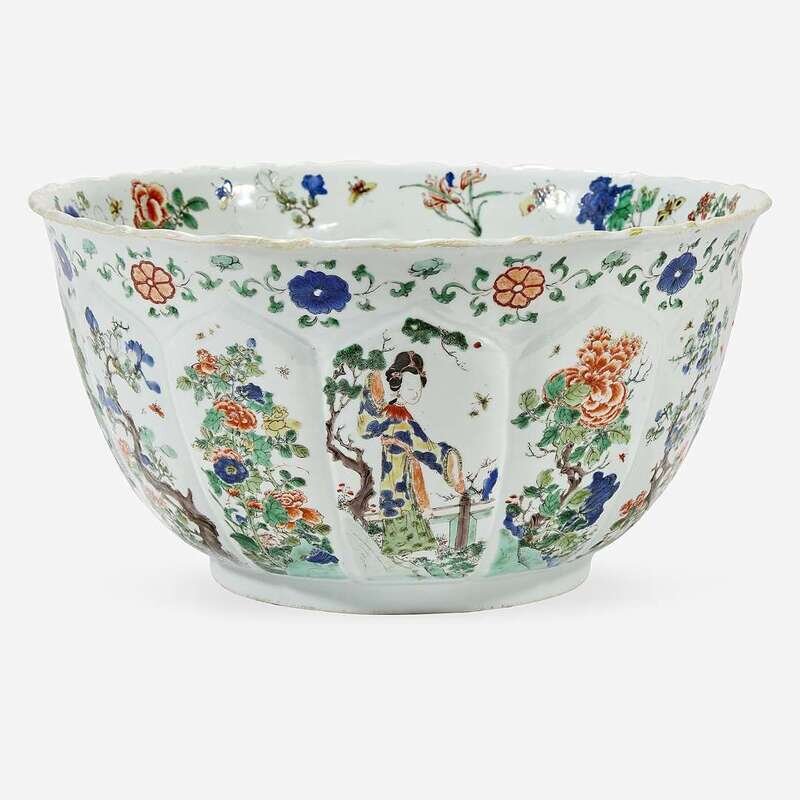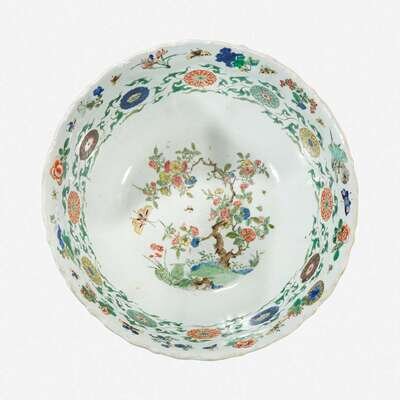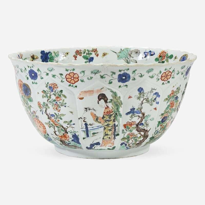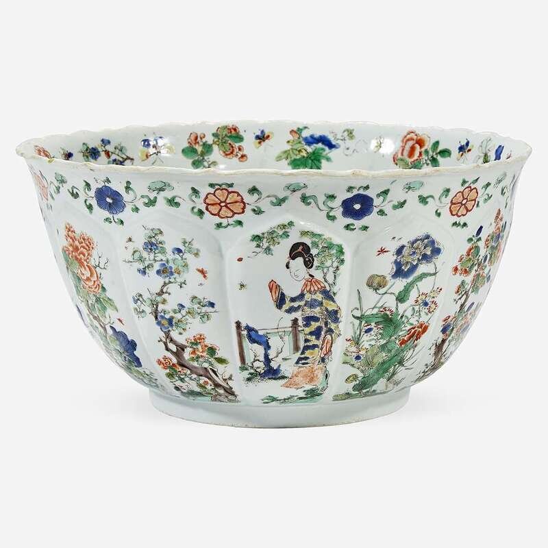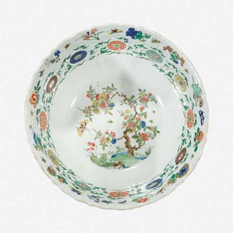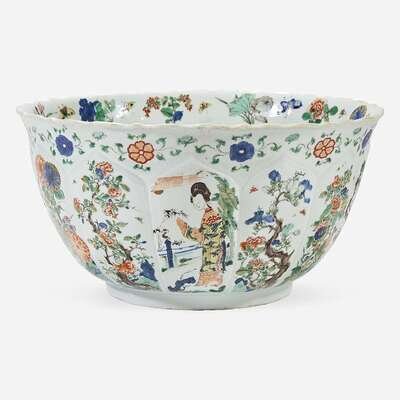 A Chinese famille verte-decorated lobed porcelain large bowl Kangxi period