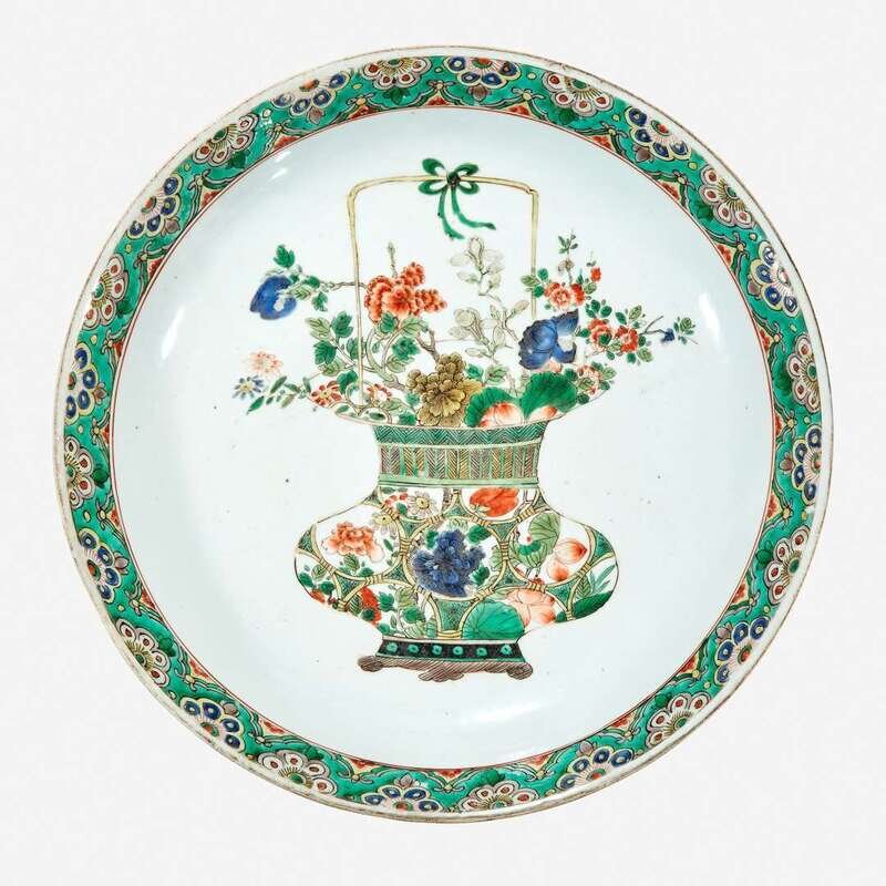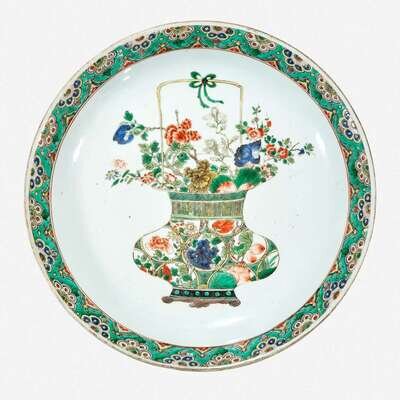 A Chinese famille verte-decorated porcelain "Flower Basket" charger Kangxi period