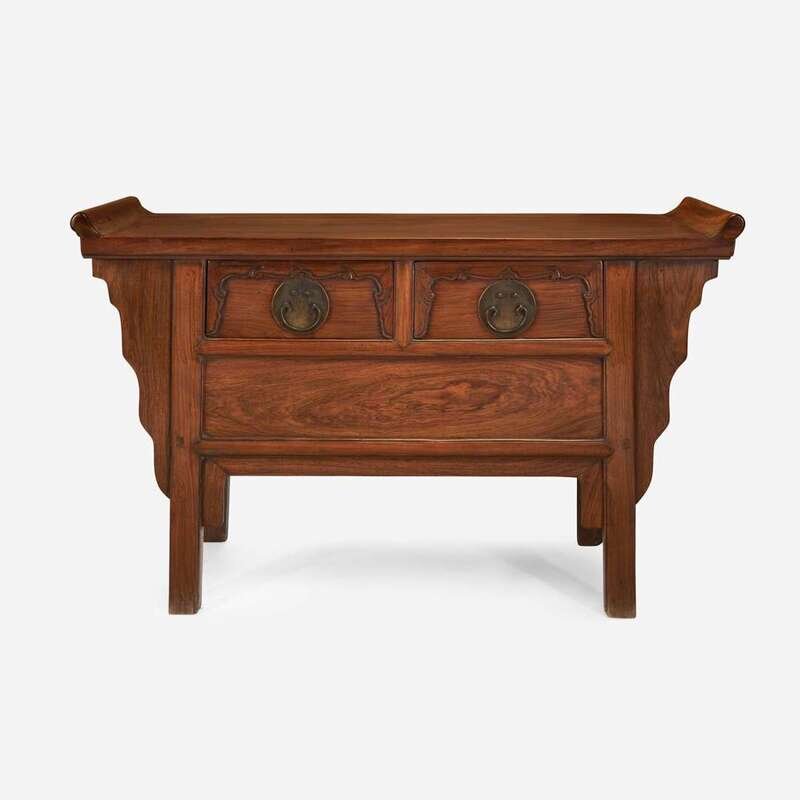 A Chinese mixed hardwood two-drawer coffer table, Lianerchu