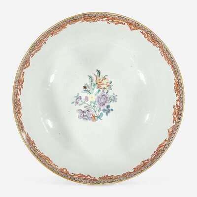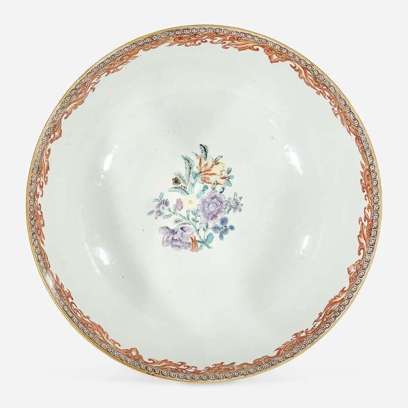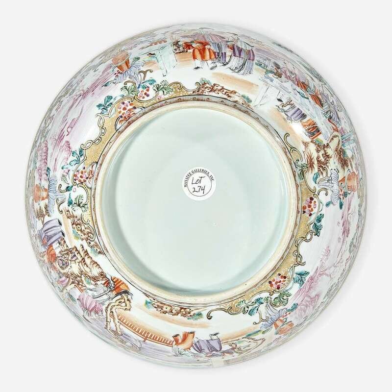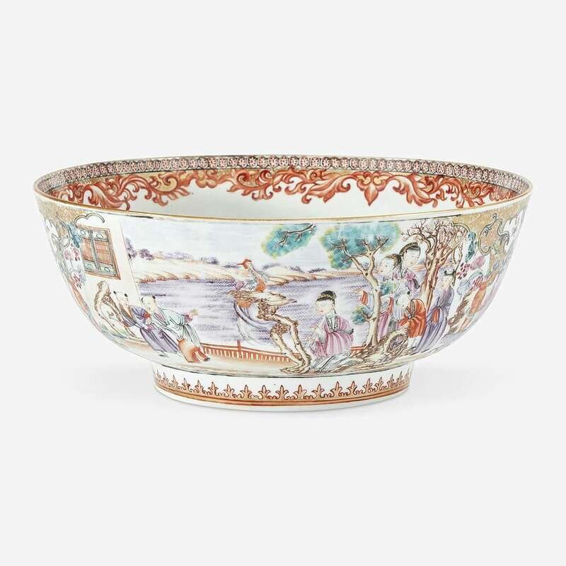 A Chinese export famille rose-decorated porcelain figural punchbowl late 18th Century