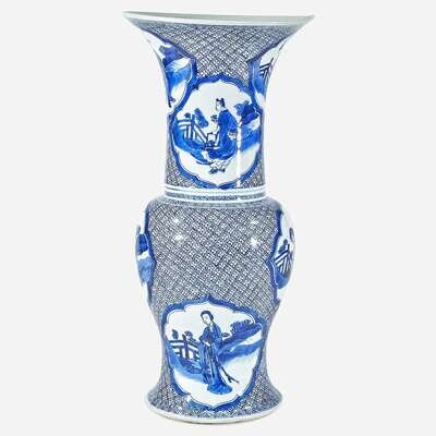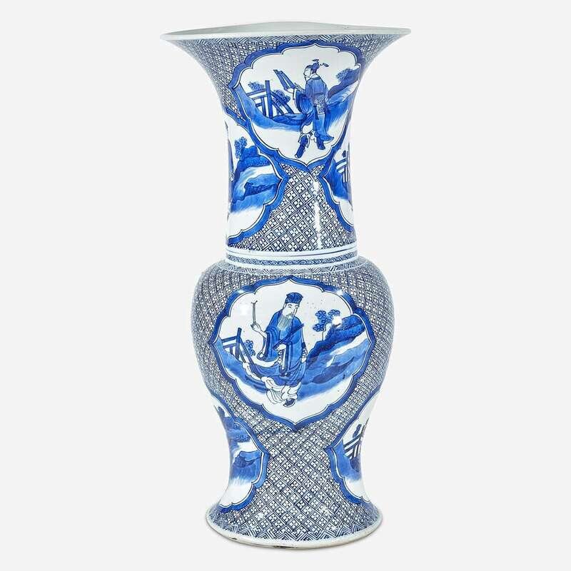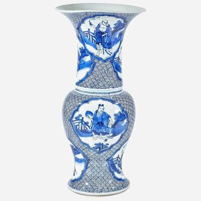 A Chinese blue and white porcelain "Phoenix-tail" "Eight Daoist Immortals" vase Kangxi period