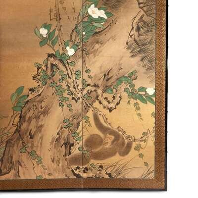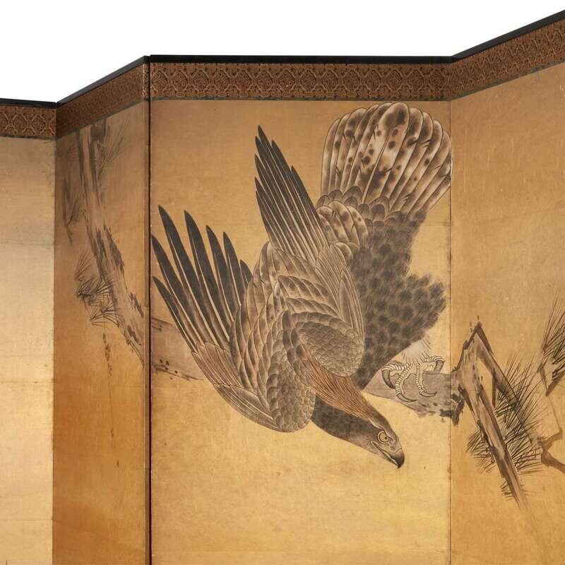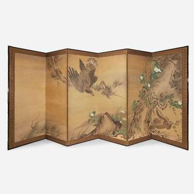 A Japanese six-panel "Eagle and Monkey" screen Edo-Meiji period